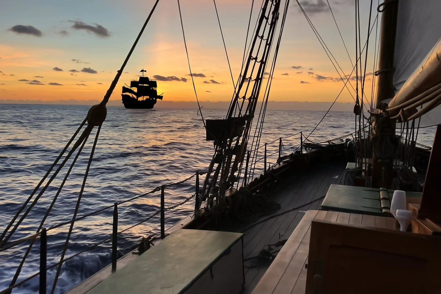 The Restauration approaches Bermuda at sunset, October 26. Photo credit: Halcyon Yachts