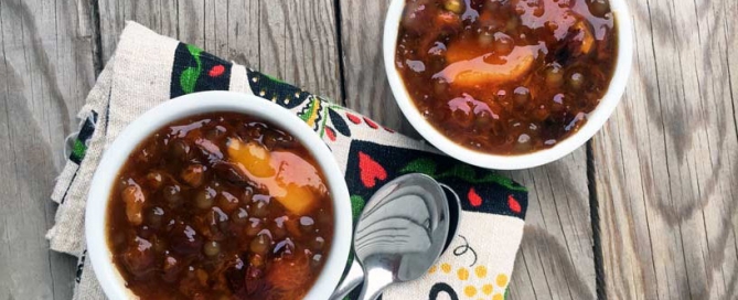 Søtsuppe (sweet soup) is a traditional Norwegian food that is great for family celebrations. It can be eaten hold or cold and is delicious for breakfast, a snack, or dessert.