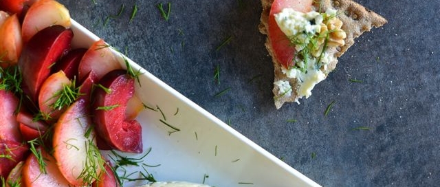 Plums with Blue Cheese, Walnuts, and Crispbread