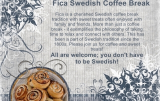 Fika like a Swede Curious about Sweden's most beloved ritual? Fika – the social Swedish coffee break – is a cherished tradition and a cornerstone of daily life in Sweden. Enjoy coffee and sweet treats compliments of Rumelva 1-685 Lodge, Sons of Norway as we gather to learn about Fika.